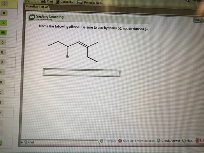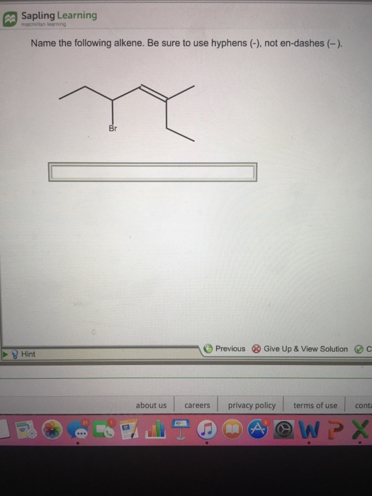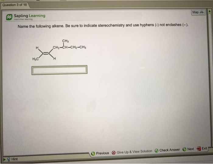 Name The Following Alkene Be Sure To Use Hyphens Not En Dashes. Select the correct name for the following compound, including the correct (e) or (z) designation where appropriate. Solved name the following alkene.