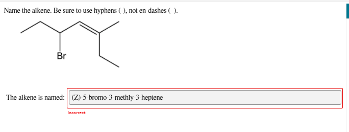 We’re being asked to name the offered structure using iupac nomenclature v the correct e/z designation. Recall the the e/z designation provides us the pure stereochemistry of dual bonds. Be sure to use hyphens not | chegg.com.