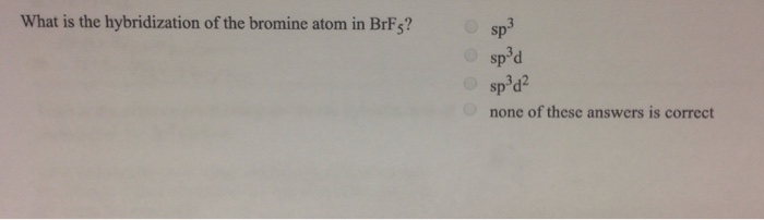 Give The Hybridization For The Br In Brf5. We are being asked to identify the hybridization of bromine (br) in brf 5. What is the hybridization of br in brf5?