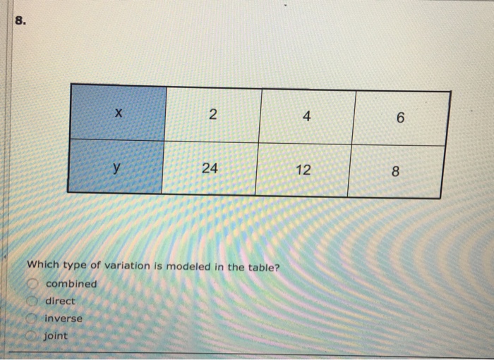 Learn how to solve joint variation problems in algebra. Basically, it shows how many different possible subsets can be made from the larger set. If y varies directly with x and inversely with z, and y = 36 when x = 12 and z = 2, find y when x = 6 and z = 3.