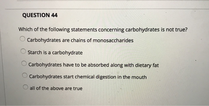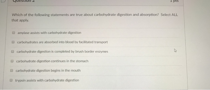 Which Of The Following Is True About Carbohydrate Digestion. B) carbohydrate digestion begins in the stomach. Disaccharides like sucrose do not need to be further broken down before being absorbed.