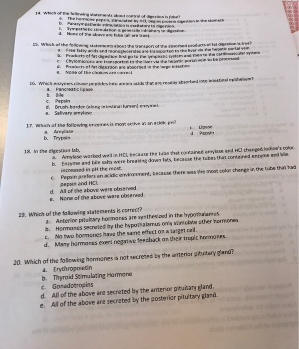 A) peptides b) amino acids c) polypeptides d) fatty acids e) glycerol. The enzyme secreted in the mouth to begin chemical digestion of carbohydrates is not active in the stomach. Carbohydrate digestion is assisted by cooking, which softens tough skins.