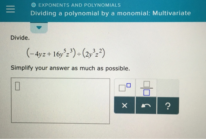 I do understand that one can’t really think of something else in such a situation. The degree of the monomial 7 y 3 z 2 is 5 ( = 3 + 2). The polynomial division calculator allows you to take a simple or complex expression and find the quotient and remainder instantly.