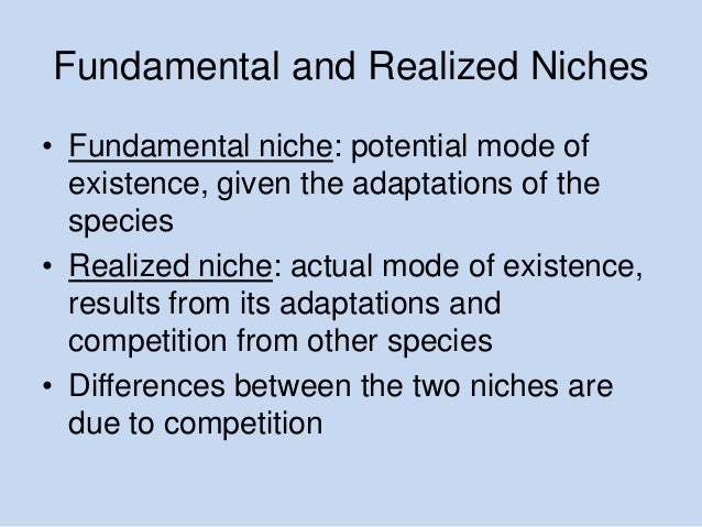 Thus, it occupies habitats where conditions are as close to an ecological optimum as can be admitted by. Niche refers to the sum total of the natural requirements necessary for meting and producing offspring. One difference between a fundamental niche and a realized niche is that _____.
